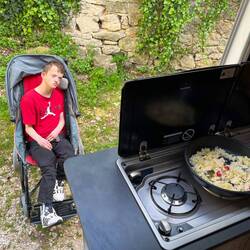 Also am Parkplatz in Losinj, Lias essen gemacht und uns auch eine Kleinigkeit, so das Lias nicht alleine essen muss 🤣🤣