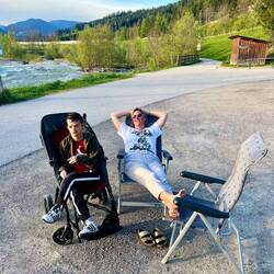 Nicole Chillt noch etwas am Wasser und Lias und ich laufen noch zum Lift 🚡