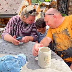 M.-J. haben uns gleich begrüßt und wir sind gleich mal etwas trinken gegangen. Lias muss den ganzen Berg hoch laufen und dann machen wir das Hüttendorf unsicher.Weiterlesen