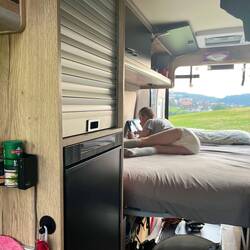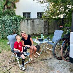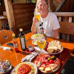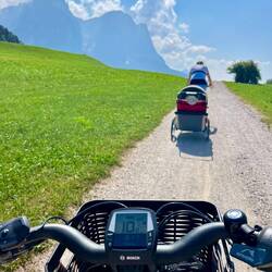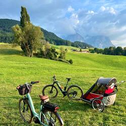 In Kastelruth bei bestem Wetter und Bergblick aufgewacht. Lias hat geschlafen bis fast 10Uhr, was für ein fauler Kerl 😝