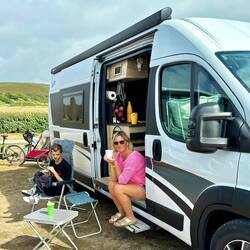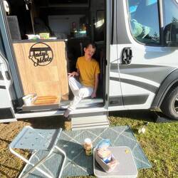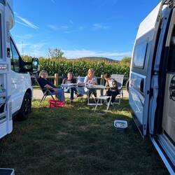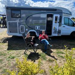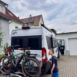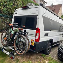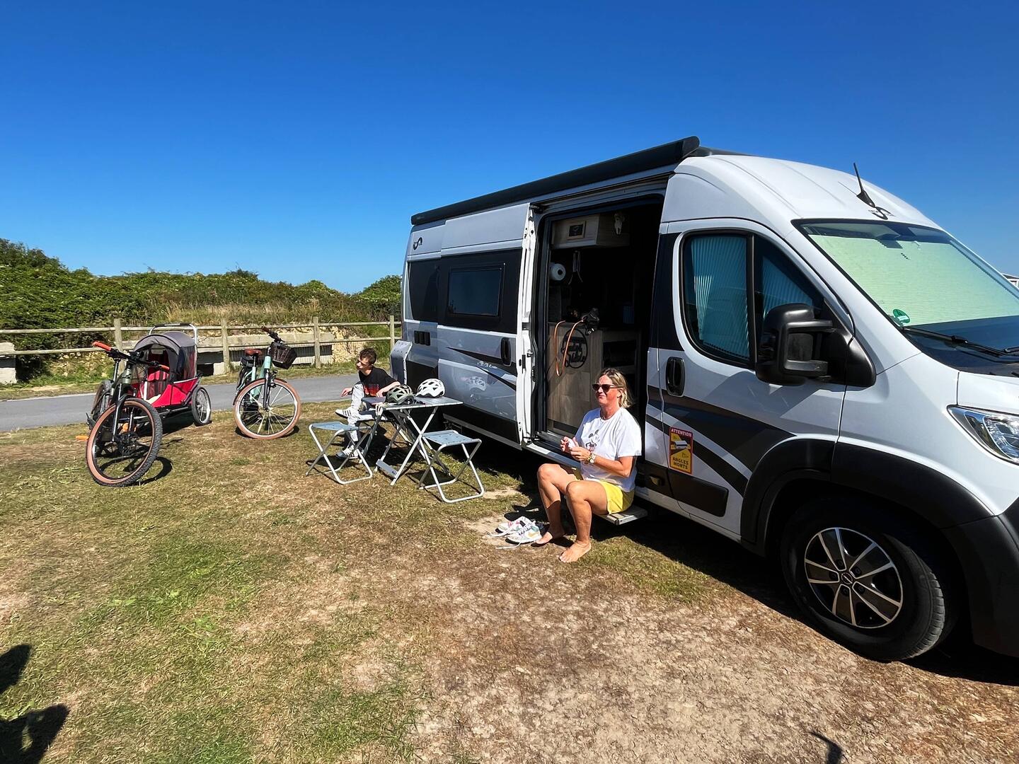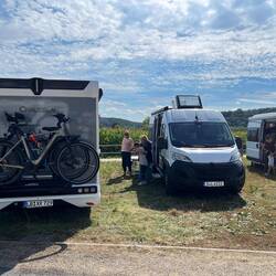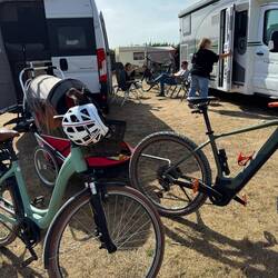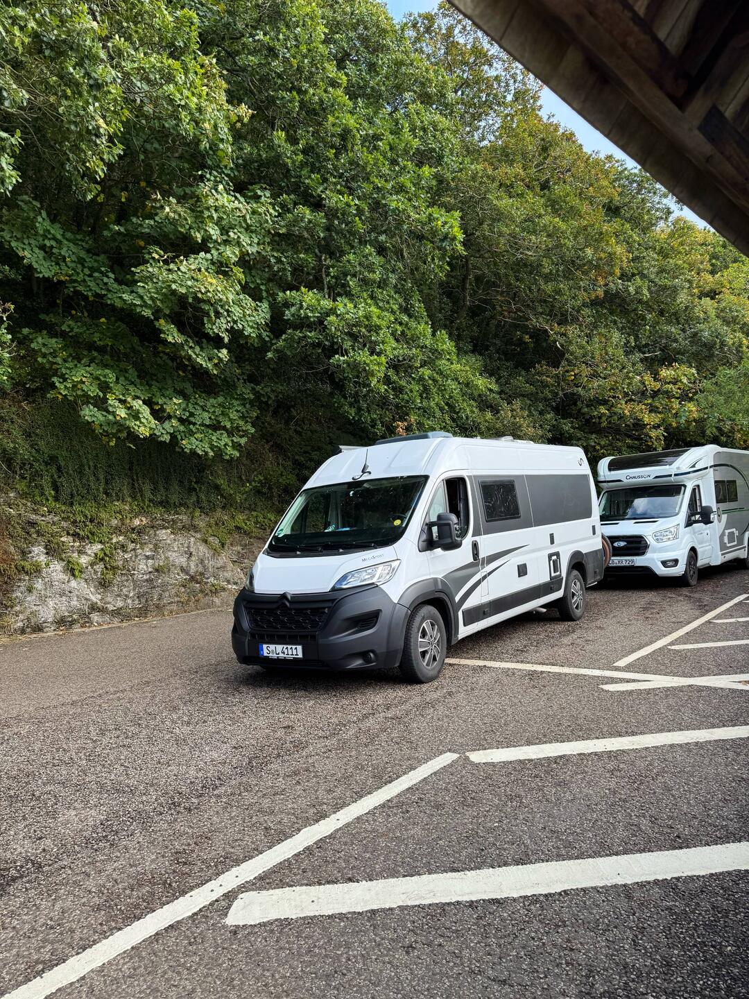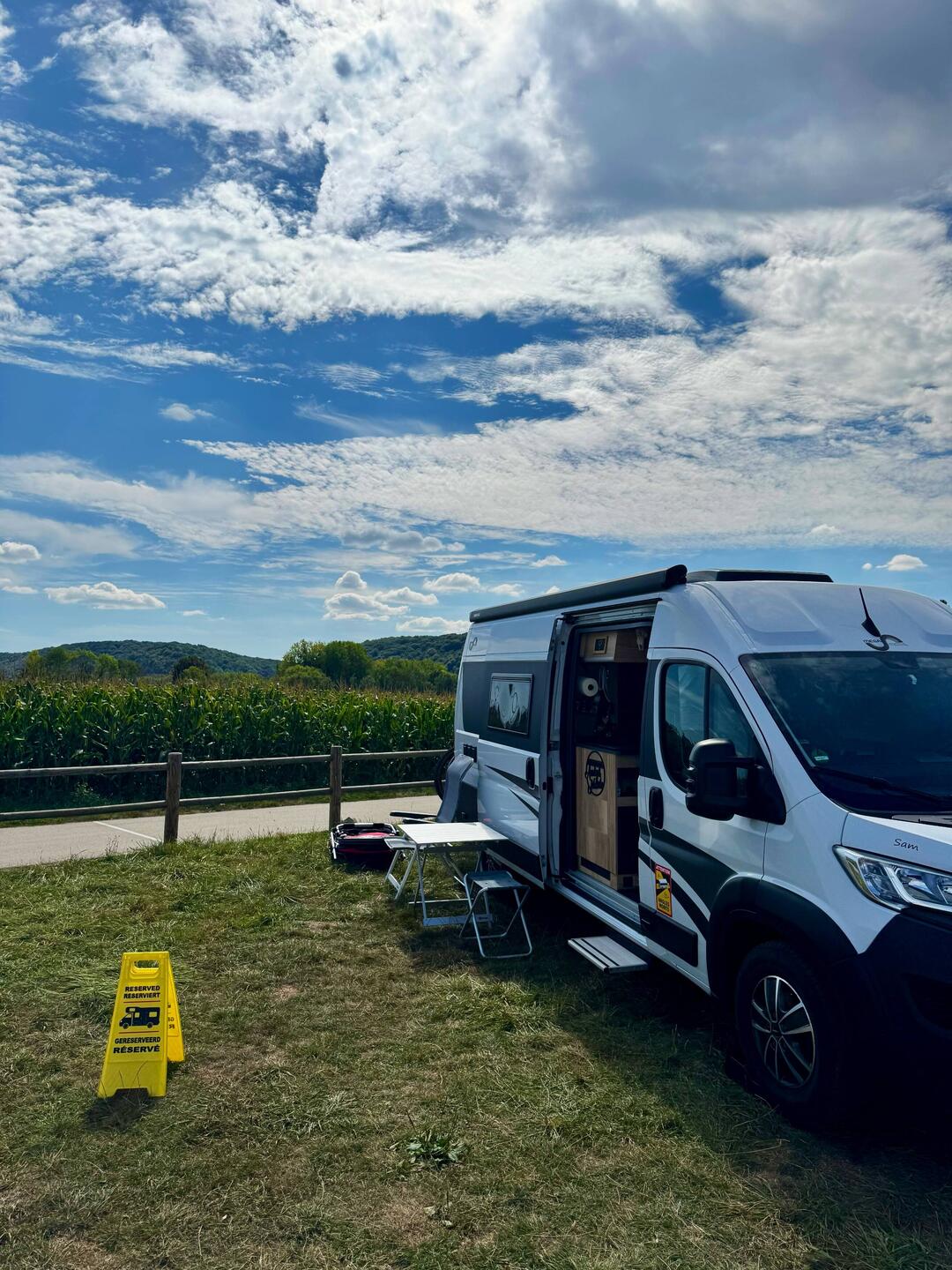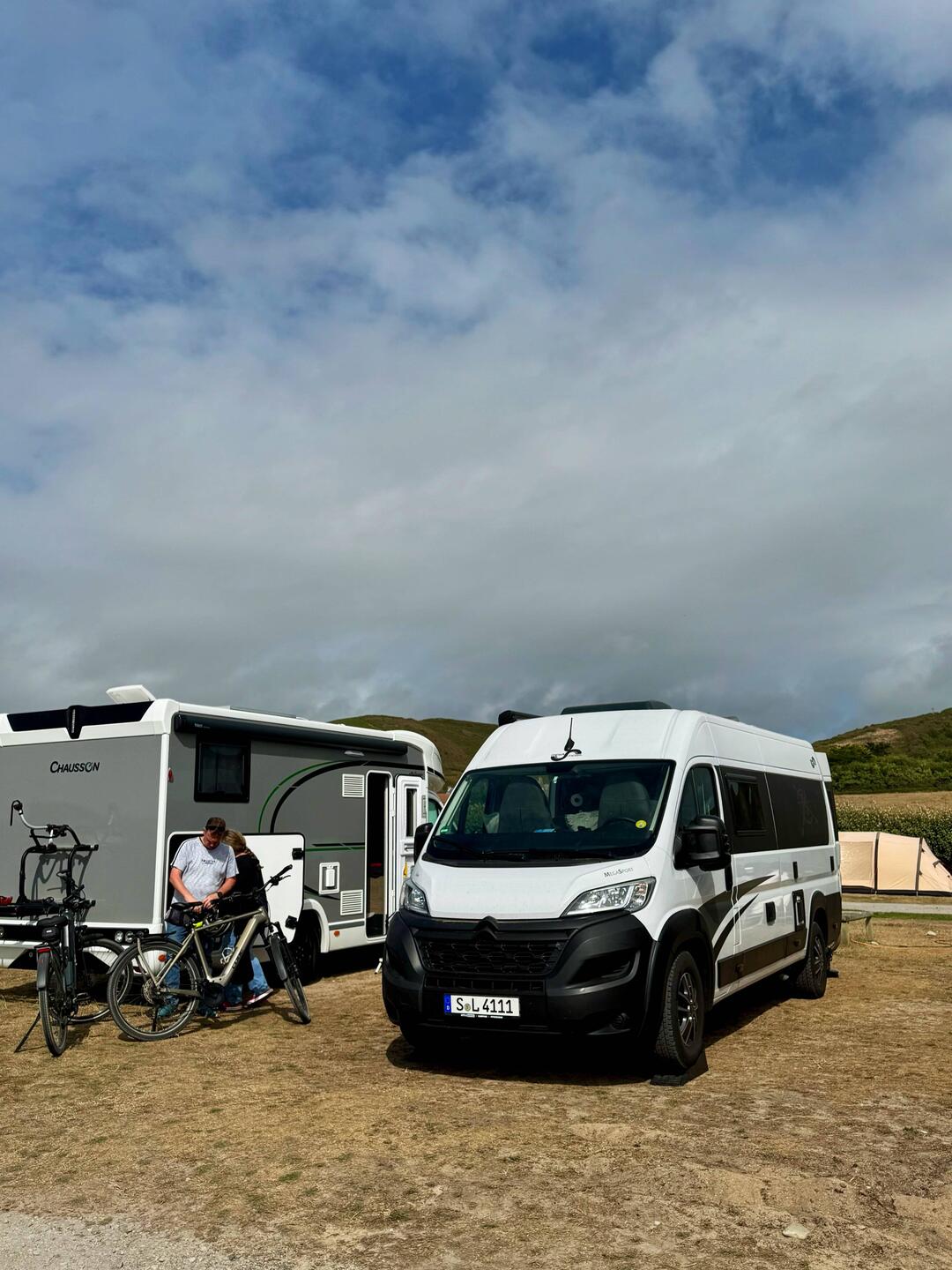 Am Platz angekommen, unseren Sam ordentlich geparkt und die Fahrräder abgesattelt 🤪