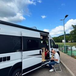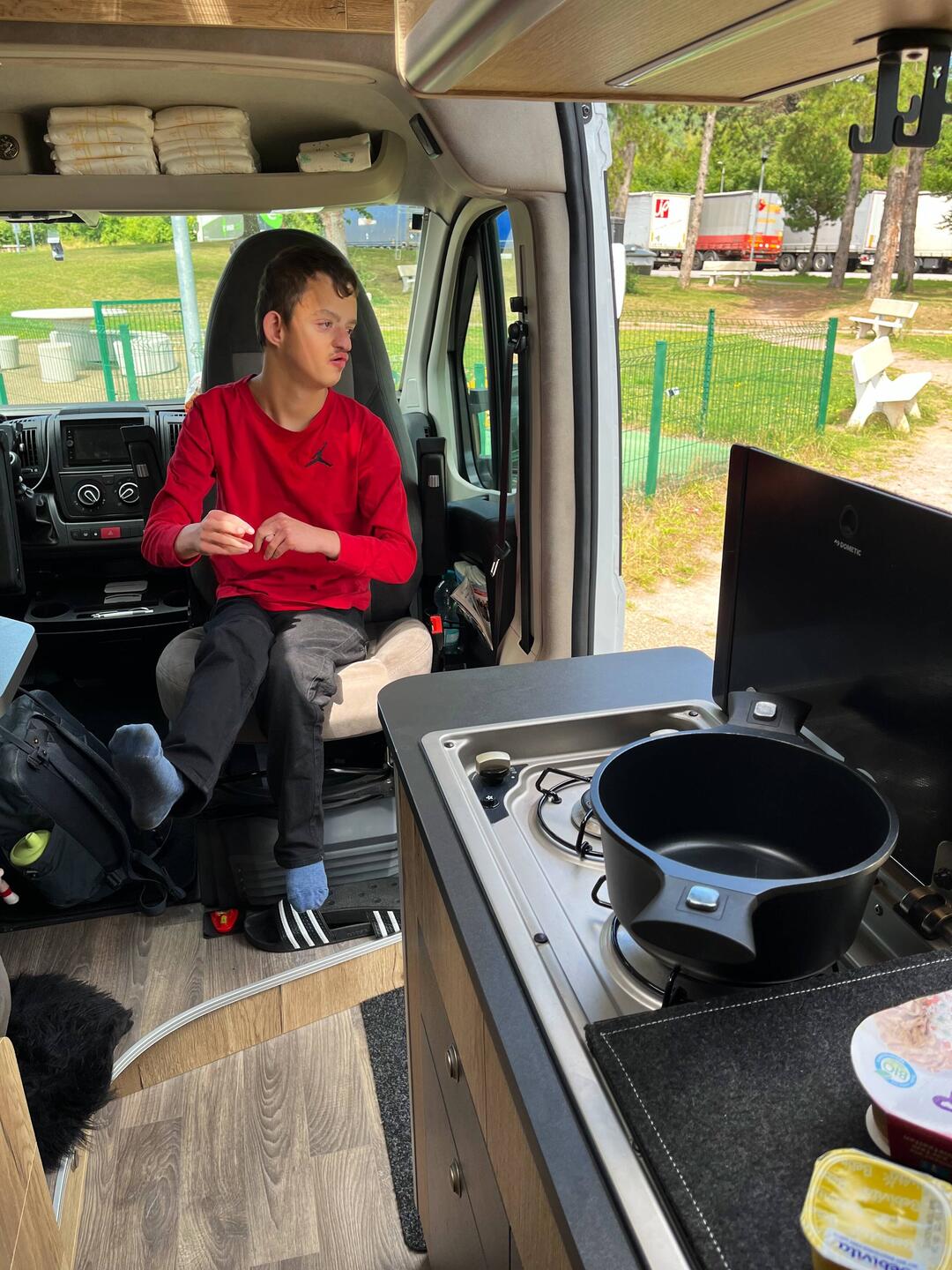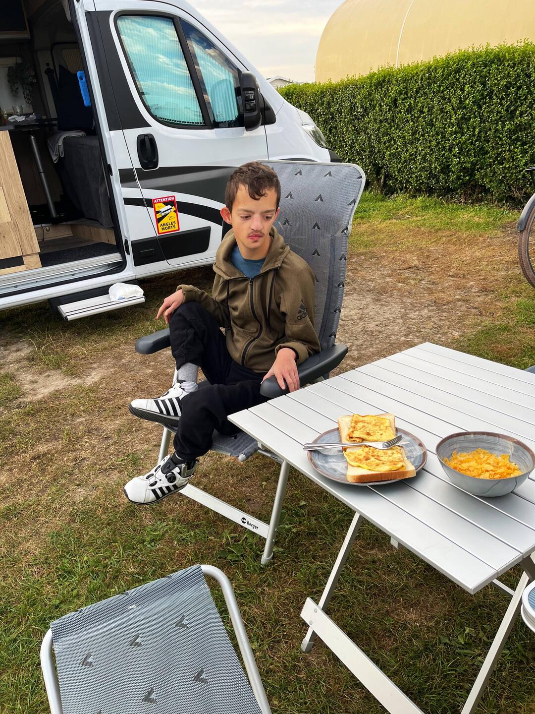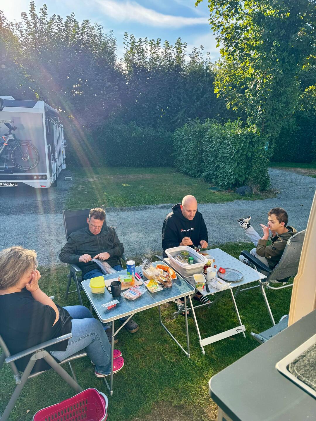 Am Platz angekommen, haben wir erst einmal den Sam fit 💪🏻 gemacht, dann unseren Platz bezogen und schnell kochen 🧑🍳 da das Kind 🧒 Hunger hat 🤣🫣