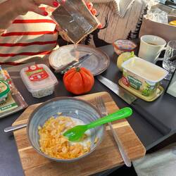 Guten Morgen 😃, heute ist es etwas bewölkt 🌥️ aber wir frühstücken trotzdem schön draußen 💪🏻