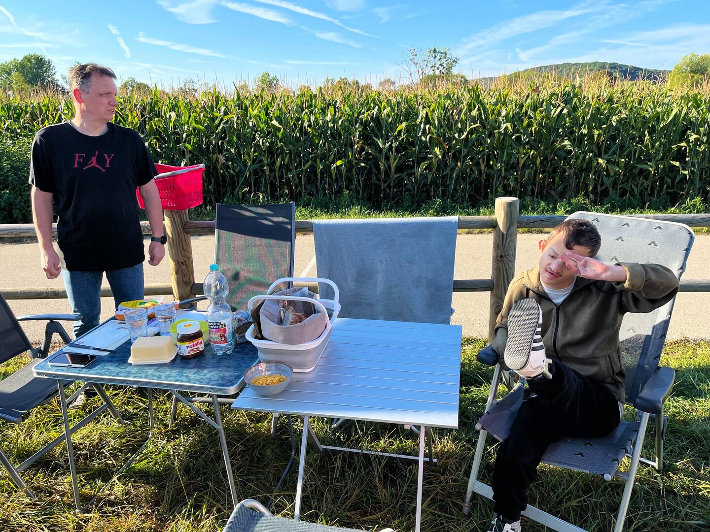 Die ersten Kilometer sind wir nun gefahren und es ist schon Mittagszeit🫠