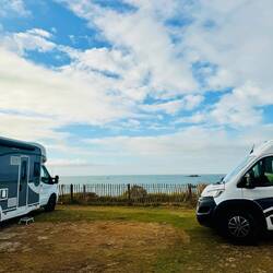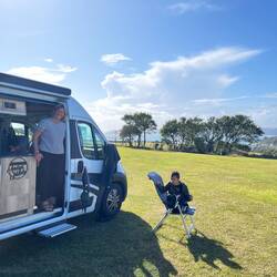 Wir machen den Sam fit und parken mit Blick aufs Meer. Es stehen sogar ein paar Kriegsschiffe 🤔in Sichtweite.