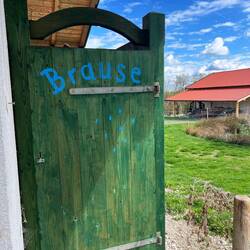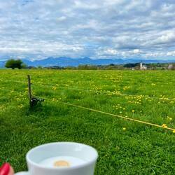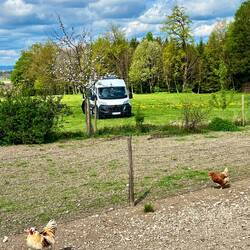 Auf einem zuckersüßen Bauernhof angekommen, haben wir uns mitten auf die Wiese gestellt mit direktem Blick auf die Berge 🏔️