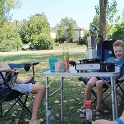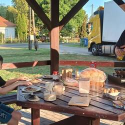 Wir mussten gestern nochmal umparken. Heute Früh Spezialfrühstück für unser Geburtstagskind!