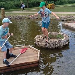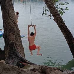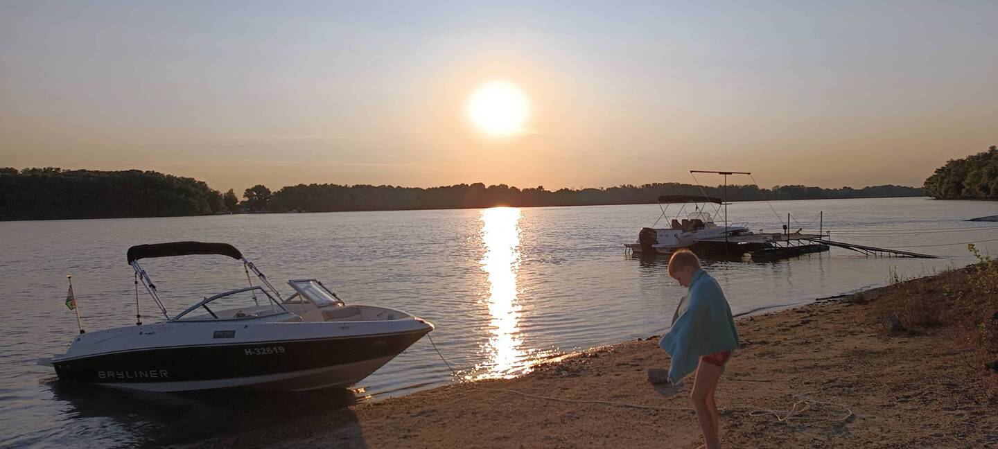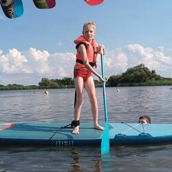 Campingplatz, Kochen, Abendspaziergang mit Eis. Weitere Programmpunkte: Strandbad und Boot fahren (Motorboot, Route nach GPS). Und SUP ausprobieren!