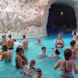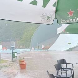 Viele viele Leute, aber das Bad ist schon was besonderes. Regenguss nach zwei Stunden...wobei das die reinste Untertreibung ist. Wir sind nass bis auf die Knochen!!!