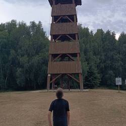 Empfangen von einem Regenguss haben wir zuerst Nudelsalat gemacht. Dann die paar Meter vom Parkplatz zum Fernsehturm.