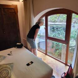 Wir haben mitten in Treviso ein kleines Zimmer gebucht. Mit einem kleinen grünen Innenhof. "Klein aber fein."