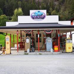 Unterwegs sind wir am "Pick Up Café" vorbei gefahren und haben gedreht um es uns anzuschauen, das wirLäs mer