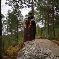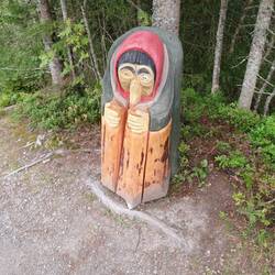 Kleine Wanderung in Steinkjer auf einem Pfad mit lustigen geschnitzten Holzfiguren auf dem Weg zum vielleicht größten Gartenstuhl der Welt ☺️
