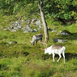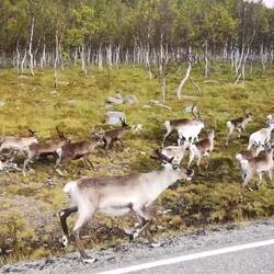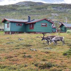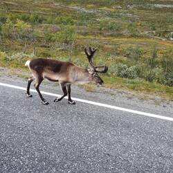 Nach unserer 2. Nacht "auf der Straße" und Bergbach nebenan, kamen heute Morgen beim Kaffee- und Teetrinken direkt 2 Rentiere vorbei gelaufen und haben in unserem Vorgarten geschmaust ☺️