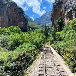Die heutige Einstiegsetappe führte mich entlang der historischen Zahnradbahn durch die wilde und wunderschöne Voraikos-Schlucht. Der Weg verlief fast immer direkt auf dem Bahngleis und es erwartetenBaca lagi