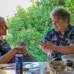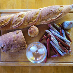 Bedingt durch die späte Ankunft von Hanna, Teddy und Lukas gegen 4Uhr früh fängt der Tag spät mit einem provenzalischen Frühstück an. Später gibt es dann alle Arten von leckeren Crêpes auf derLæs mere
