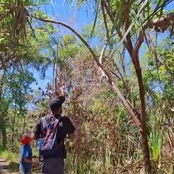 Wir sehen wieder Flying Foxes die in den Palmenästen hängen und schlafen oder streiten undRead more