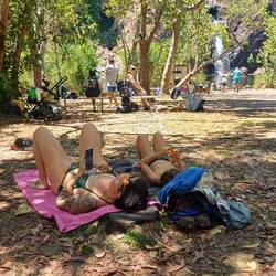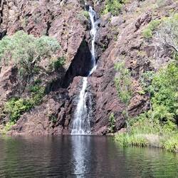 Am nächsten Morgen nehmen wir uns den Wangi Falls Loop vor. Eine kleine Wanderung über den Wasserfall.