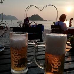 Vanmorgen met een paar Chinese ontbeten was mwah daarna lekker touren onderweg even wat drinken bij een benzinestation. Onderweg waren er alleen maar wegwerkzaamheden dus het schoot niet echt op. Maar uiteindelijk waren we in lumut waar we op de boot van 13:45 stapte naar pulau pangkor. Rustig op het water dus na 40 minuten waren we er. Snel een taxi scoren. Oud gammel busje en roze. Alle taxi's zijn hier roze. Na 15 minuten waren we bij ons hotel. Ruime kamers en mooi zwembad. Eerst maar wat eten en daarna plonzen in het zwembad. Daarna douche en naar coral beach voor de zonsondergang bij daddy's café erg mooi en het eten en drinken was ook erg fijn. Daarna terug en nu alles plat en wij met een tiger in onze hand ff chillen. Morgen meer.Read more