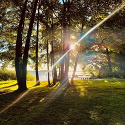 Morgendliche Wanderung um den Kirchsee. Sm Ufer entlang, durch Lindenalleen und dichten Wald .
