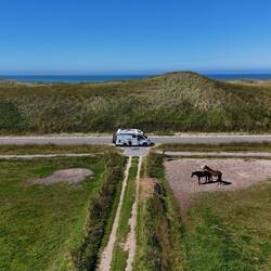 Den Platz bei einer Hunderunde entdeckt und für gut befunden. Inmitten der riesigen Dünen von Tornby, direkt angrenzend an einen riesigen hundeskov….