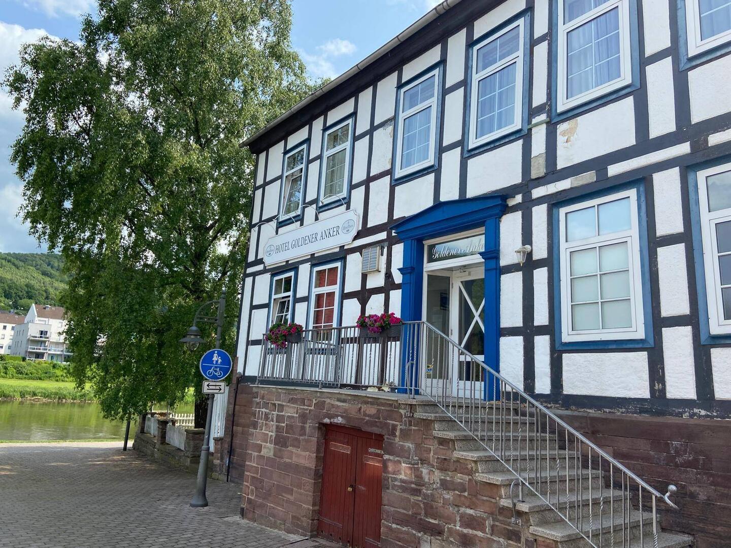 Pünktlich um 14.30 Uhr sind wir am Hotel Goldener Anker in Bodenwerder bri Sonnenschein angekommen. Einchecken und eine kurze Pause.