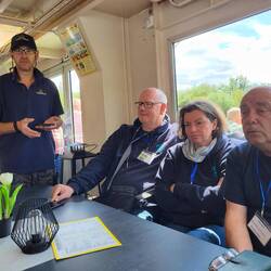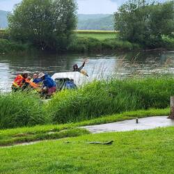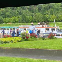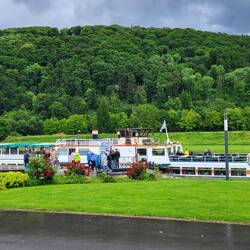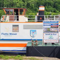 Im Regen haben wir am Schiffsanleger auf die Flotte Weser gewartet. Dann ging es los mit der MS Holzminden nach Rühle und zurück.
