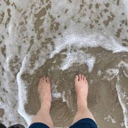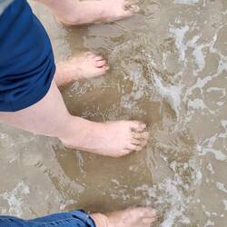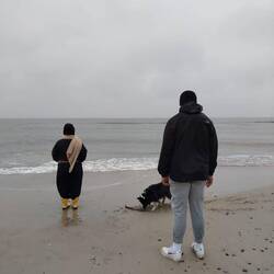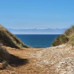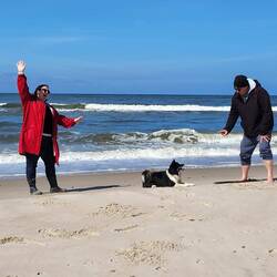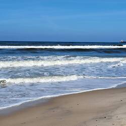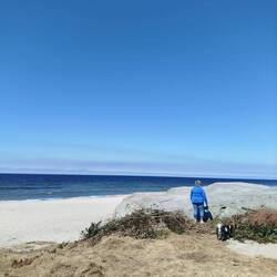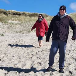 Ein letzter Strandspaziergang bei blauen Himmel und Sonnenschein.