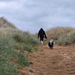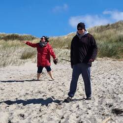 Über den Strand zum nahegelegenen Hofladen. Nach einer schönen Pause sind wir in Ruhe zurückmarschiert.