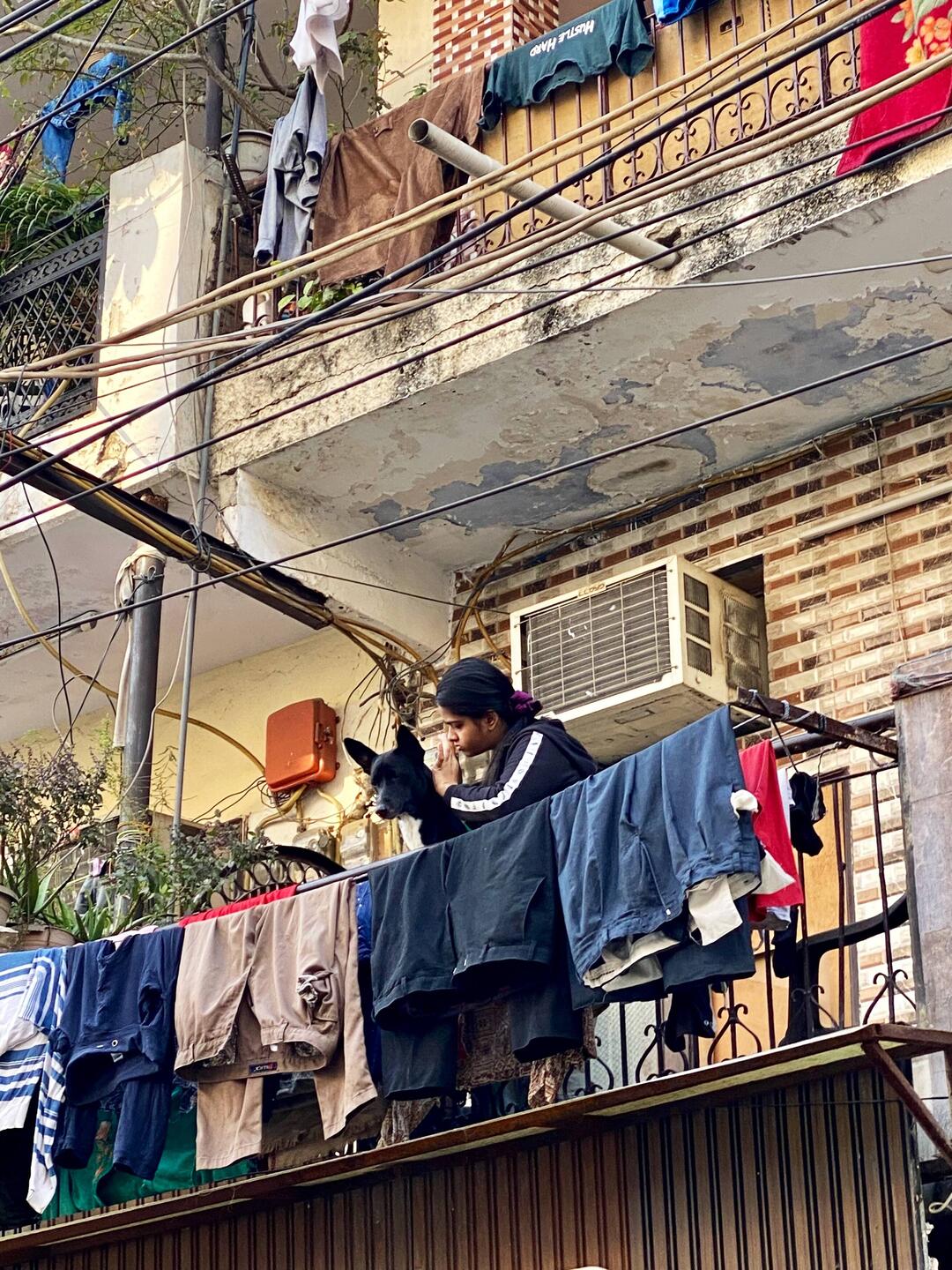 Ich wohne in einem ruhigen Wohnviertel, das an einem Sonntag fast friedlich wirkt. Delhi erinnert an andere südostasiatische Metropolen – nur dass es ein Wohngebiet an einem Sonntag ist (siehe Video).