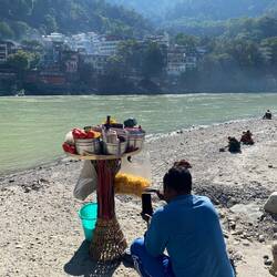 Da unklar ist, ob ich je nach Rishikesh zurückkehre, nutze ich die Gelegenheit für ein Bad im heiligen Ganges. Der Fluss ist eisig, doch angesichts seines Ursprungs im Himalaya überrascht das kaum. Es ist ein Moment voller Symbolik – und Kälte.