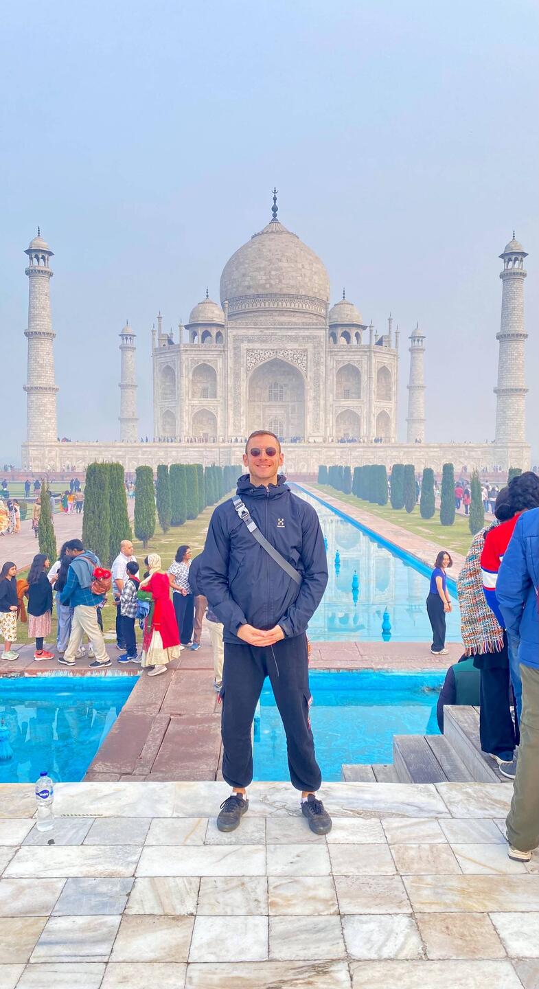 Nach der Ankunft mit dem Nachtbus ist mein Zimmer noch nicht fertig, doch das hält mich nicht auf. Ich schnappe mir mein Bauchtäschchen und stürze mich zu Sonnenaufgang ins Gedränge. Normalerweise bin ich niemand, der Sehenswürdigkeiten zu hoch bewertet, aber: das Taj Mahal ist einfach überwältigend. Jede Linie, jeder Marmorstein scheint Perfektion auszustrahlen, und die Ästhetik dieses Bauwerks ist schlicht unvergleichlich. Trotz der Menschenmassen gelingt es mir, einen magischen Moment einzufangen und ein wirklich schönes Foto zu schießen.