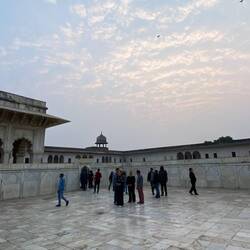 Nach einem erholsamen Mittagsschlaf geht es am Abend weiter, diesmal zum Agra Fort, einem weiteren UNESCO-Weltkulturerbe. Die imposanten Mauern und die kunstvolle Architektur beeindrucken mich – auch wenn ich spüre, dass solche Bauwerke an Faszination verlieren, je mehr man sie sieht. Trotzdem ist es ein würdiger Abschluss in Agra.