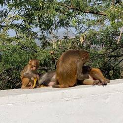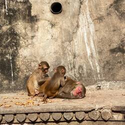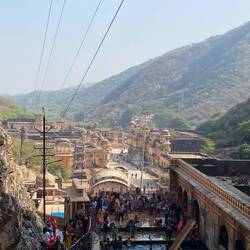 Allerdings ist Jaipur - das habe ich bisher noch nicht erlebt - geprägt von Scams und der Tatsache, dass du als Geldschein betrachtet wirst. Zusätzlich ist der Lärm und der Gestank indischer Großstädte für mich, noch angeschlagen, unerträglich. Jaipur hat ebenfalls wieder 4.5 Millionen Einwohner. Hier gibt es vor allem einen schönen Palast, für die ich mir für 1h eine Privatführung gönne und Tempel in den Bergen, bei denen Hindus und Affen zusammen leben und zelebrieren. Nachdem ich das Wichtigste in Jaipur besichtigt habe, beschließe ich auf das Land zu fahren und Ruhe zu suchen..