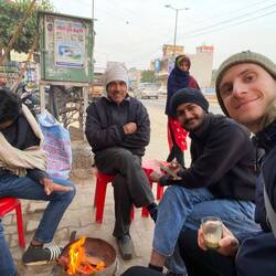Es beginnt stets gleich: Zuerst werde ich von den Menschen fragend angestarrt. Dann laden mich ein paar Männer freundlich ans Feuer ein – die Nächte und Morgen sind hier wirklich kalt – und kaum habe ich mich hingesetzt, halte ich schon eine dampfende Tasse Masala-Chai in den Händen. Einer der Männer kann ein wenig Englisch und stellt die unvermeidlichen Fragen: "Woher kommst du?", "Bist du verheiratet?", "Hast du Kinder?", "Was arbeitest du?". Die Gespräche sind simpel, aber herzlich. Und wenn es nichts mehr zu sagen gibt, bedanke ich mich, verabschiede mich und fahre weiter. Es ist nicht tiefgründig, aber genau das macht es aus: die Freude der Menschen über den kurzen Austausch und das Gefühl, willkommen zu sein.