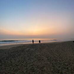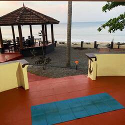 Die Entscheidung, nach Varkala ans Meer zu fliegen und genau diese Schule zu wählen, war goldrichtig. Trotz der heißen Nächte, die das Einschlafen erschweren, genieße ich das Leben direkt am Meer in vollen Zügen. Rund 80 % unseres Tages verbringen wir in der „Yoga-Hall“, nur etwa 30 Meter vom Meer entfernt. Zwischendurch gibt es immer wieder genügend Gelegenheiten für erfrischende Badepausen. Das stetige Rauschen der Wellen im Hintergrund verleiht allem eine fast magische Atmosphäre.
