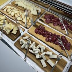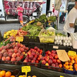 Today we woke up at Hotel De Russie and had a quick breakfast on a beautiful terrace over looking the hotel courtyard. Pretty solid Italian breakfast with all the normal fixings. We also did some laundry this morning. Next up was 25 minute walk to Piazza Farnese, where we met our tour group for the morning’s food tour (https://www.viator.com/tours/Rome/Small-Group-R…). First stop was the local farmer’s market at Campo de Fiori - if we lived in Rome, this would be a regular stop. The produce looked phenomenal and the stands will actually cut up the fruit and veg for you to take home. The group visited a famous market performer who created his own vegetable cutting tools which are pretty cool! He put on his little show and we then completed the quick visit which is ok because we are going back there tomorrow.