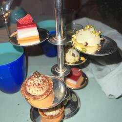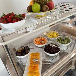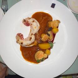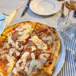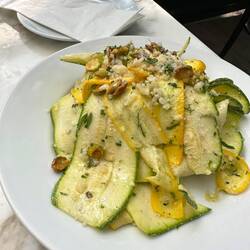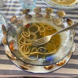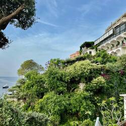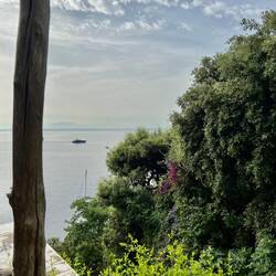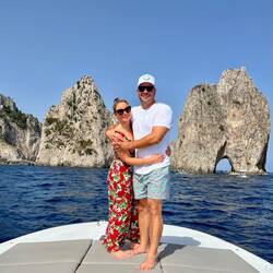 We were supposed to have lunch at a fancy beach club called Il Riccio, but decided at the last minute to take our captain’s suggestion and stop at Torre Saracena (http://www.torresaracenacapri.com/en/index) at the Marina Piccolo. This was the best decision we could have made. Both the scenery and the food were unreal. We enjoyed zucchini Parmesan, fresh raw mixed seafood, spaghetti vongole, and pasta with zucchini and fresh shrimp. After lunch, we took a nice hike up (everything is straight up and down here) to catch a lovely open-air taxi into the town of Capri. The town was crowded but lovely. A great mix of independent and luxury stores, with plenty of lemon sorbet everywhere you turn. Matt got a great pair of shoes at Ferragamo, so the physical pain we felt on the stairs was worth it. We also ran into Adam Leuger, which was fun! When we arrived back at the hotel, we spent about an hour chilling at the pool, because you really just cannot get enough of the water here. Headed back up to the room using the very cool external elevator (see video; lots of steps and elevators because the hotel is built into a cliff) and got ready for dinner. Tonight we ate at Al Mare, the more casual, but still very nice restaurant that the hotel. When we sat down they gave us each a menu— standard— but only Matt’s had prices on it 😹!! The food was wonderful— we had a calzone with ricotta, mozzarella and salami, a beautiful tuna tartare with preserved lemon, bottarga and fennel, spaghetti with lemon cream, fusilli nerano (zucchini and provolone), and grilled vegetables. We also ordered fried anchovies, though I’m not sure why Matt wanted this, seeing as he hates anchovies. It did not get eaten. Unfortunately, our lovely night was ruined by Donald Trump, as the conspiracy theorists next to us spent the whole night describing every scene in “2000 Mules” to their Australian dining companions and going on and on about how lock down and isolation caused more deaths from suicide than COVID caused. We cut the night short and headed back to the room. We’ll be in bed by 11, which is fine because we’ve been up until about 2am the last three nights!Read more