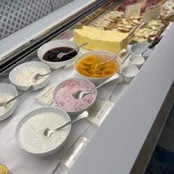 This morning we woke up gloriously late— kind of. It was about 6:45 here, which is 8:45 at home, so felt like a big sleep in!! Matt worked out, while I showered and did my hair. He got back and we went downstairs for coffee and pastries, gotta use that breakfast credit! The pastries here, so far, have been unreal. We had a cardamom bun with sweetened goat cheese cream, and another kouign-aman style bun filled with dulce de lece, pear and more goat cheese. Coffee was also amaze.