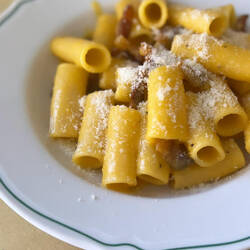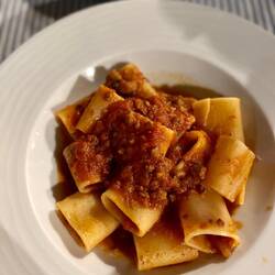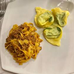 For dinner, we went to Casa Ciabattini, also off the beaten path. https://casaciabattini.it We had a beautifu octopus salad and stuffed squash blossoms to start, followed by ricotta and spinach gnudi, tagliatelle al ragu, eggplant tortellini with burrata cream (pure eggplant flavor, divine), double cooked pork, and braised beef. We walked home (about 10 miles total, just since 1pm!), showered and hit the sack!
