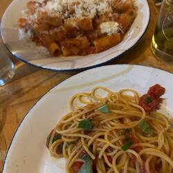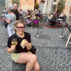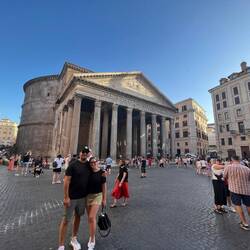 Today we woke up in Amalfi, skipped breakfast… JK!! Well, actually Matt did… besides a few bites of our leftovers from yesterday. I had a salad. Pro tip for Italy: the breakfast buffet is the best place to get veggies/salad. We hopped in our car and headed back over and down the mountain into Naples to catch the train to Rome. It really is the most beautiful drive. This time, we weren’t in basic economy and I actually had somewhere to put my feet. What luxury! We arrived in Rome, where prior to arrival, we elected to forgo a car service to the hotel. Little did we know that there would be a taxi strike 🙄. We waited about 40 min for a cab and finally made it to the gorgeous Hotel de Russie. https://www.roccofortehotels.com/hotels-and-res… We dropped out bags and headed right out for lunch at Hosteria da Pietro (http://www.hostariadapietro.it). We started with vitello tonnato and went with spaghetti with razor clams and amatriciana, and a side of spinach, for our mains. After another stressful time finding a cab, we met our guide Nunzia at the Colosseum. We went on a three hour walking tour of the Colosseum, Palantine Hill and the Roman Forum. So much to see, so much to learn! And in 95 degree heat. Matt wanted her to go on longer, but alas, the tour had to come to an end. We rented bird scooters and immediately drove them into the busiest roundabout in Rome. We saw our life flash before our eyes and ditched the birds immediately. We hoofed it back towards the hotel, stopping to sample some pizza al taglio and gelato in the way.Read more
