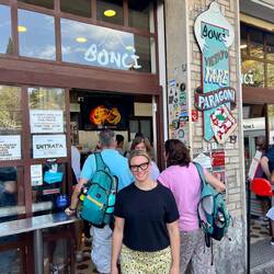In the highest heat of the day, we set back out to try and find the Museum of Pasta. Unfortunately, it looks like it was a victim of the pandemic and it’s closed (hopefully just for now). By this time, we’d were working our appetites back up and walked another 40 min to the smaller, more “deli” offshoot of Bonchi. We heard the porchetta was amazing, but by the time we got there, they were out. They did have pizza, but for some reason, we decided to walk 15 more min to the actual Bonchi Pizzarium. The line was… long. But we’d made it this far, and it was 92f, so we were waiting, god dammit! I guess we should have taken a number right when we got there, but it’s unclear if that would really help you skip the line. Next time I’ll try that though. Anywhoo, after about a 35 min wait, we finally got to the front. The two-family group in front of us proceeded to take, I kid you not, allllll the good stuff. We were dying. In the end, we got a zucchini and sausage pizza, a white pizza with mozzarella and what seemed like pickled zucchini (both zucchini pizzas had sesame, a must going forward), and a tomato ricotta pie, with a bit of basil. It was just so hot, we decided to take the pizza and hop in a cab to enjoy back in our hotel room. THANK GOD IT WAS WORTH THE WAIT. It was seriously like nothing else you’ve ever had. I wish I could give a better description of the toppings, but there’s no signs and everything just moves so fast, but my lord. Idk if the Bonchi in Chicago is this good, but if it is, run, don’t walk. https://www.bonci.it/en/bonci/