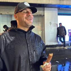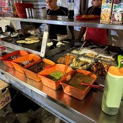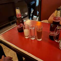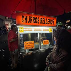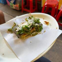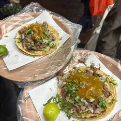We were about to leave for a taco tour and noticed that the sky looks gray… Sure enough, although the forecast prior to leaving said not one drop of rain, it now said thunderstorms all night. So we bundled up and headed out to meet our guide Sessi in the historic downtown area. We took an Uber and got a little taste of the legendary Mexico City traffic. Apparently it was extra bad, because there was a march going on, which happens all the time. We arrived and set out to her first destination. The first taco we tried was called a basket taco. They make the tacos and stack them in this huge bin and then pour hot oil and sauce over them to cook them. We try to mole verde and a chiccarones taco. I will admit, these were not my favorite. Pretty soft and not great flavor. The best part was the spicy pickled veggies on the side. Next we stopped at Las Escaleras, where they are just cooking at the bottom of a tiny staircase. This taco was not really a taco. It was a very traditional quesadilla, which are deep-fried here, filled with tons of zucchini flowers and Oaxaca cheese. It was in topped with shredded lettuce and Cotija cheese, as well as some salsa, and it was outrageously delicious. The third stop was at Taqueria el Torito for some thing that Matt and I were a bit skeptical about. Our guide recommended a taco that had a mix of tripe and brisket. Not being a tripe lover, I was put off of a bit, but that ended up being the best taco of the night. They put the tripe and the brisket mix on the flat top and make it super crispy with a good dose of salt before it goes on your taco, topped with cilantro and onions. A revelation, I’m a tripe lover! And so is Matt! Who knew! Next stop was Los Cocuyos, made famous by Anthony Bourdain. We tried Al pastor (not the best I’ve ever had!!), chorizo/brisket mix and cheek tacos. This was really not the best but good, bc tacos. Also, this was an inside sit-down situation, which was very welcome as we had been traipsing around in full downpour heretofore. On our way to our next stop, we had churros filled with cajeta and condensed milk (churros rellenos). Sooo crispy, amazing. We stopped at a historic “canteen” called Tio Pepe’s to have a traditional tequila break— one shot of lime juice, one shot of tequila and one short of sangrita, which is basically a house made bloody Mary mix. I did not partake in this, I had a Michelada, which here is just lime juice and beer, and it was great. Of note, in Mexico City specifically, a Michelada is just that and a Chilada is the one with the Clamato, etc. At our last taco stop, it was tacos guisados— stewed brisket with flat-top melted crispy cheese on top. The DIY condiments included beans (yum), pico and a variety of salsas. The spice level of all the salsas is high, which I am pretty surprised by!! Or maybe I’m just surprised by my spice intolerance.