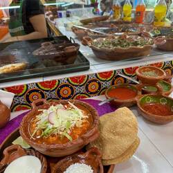 We got picked up from there and headed to the Frida Khalo house/museum. Unfortunately, I lost my favorite sweater somewhere along the way. Luckily they still make it so I’ll get a new one. Do not despair. Anywhoo. We made it to the museum and took a wonderful guided tour where we learned so much about her life, her process and her relationship with Diego Rivera. From there, we walked over to the Coyoacan market. It was very cool, with tons of food and produce stalls. We picked a spot with a bunch of people and got some pozole to try. Even though basically no one speaks English anywhere, it’s been pretty easy to communicate. The women who were cooking told us the best way to eat the pozole— crema on the baked tortilla with pozole next and cheese on top. Took it to another level. Very good.