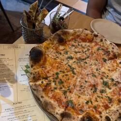 Stop two was a surprise visit to Roscioli which is actually where we planned to eat dinner that evening. Roscioli is a bakery/deli/everything gourmet shop (think high level Italian Zingerman’s). It is also a “Forno” meaning that have a big wood burning oven and in addition to multiple other ovens on site. The bread and pastries look amazing but we were there for the granddaddy of them all - Pizza al taglio. The Roscioli pizza is cut into squares and there are many different kinds to choose from. We had the Margarita and Pomodoro slices, both of which were incredible (this entry is all Matt). So good that we will be going back for breakfast to try other things.