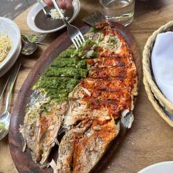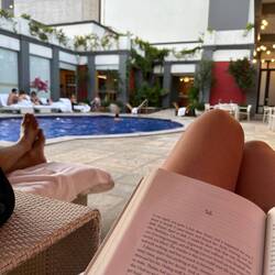 I said the other day that Rosetta was our most hyped up meal, but I forgot about this one— CONTRAMAR!! (http://contramar.com.mx) As I mentioned, I was def having some issues in the gut health department, but I’d have to be on my deathbed to hold back from eating this meal. We started with the legendary tuna tostadas. They were, as advertised by our waiter, some of the best tostadas (well, he said THE best, but without trying them all, I’m not comfortable making that proclamation) in all of Mexico; a crispy corn tortilla with a layer of chipotle mayo (which i was surprised by) topped with thinly sliced super fresh tuna, crispy leeks and avocado 🤌🏻. Additionally we ordered albondigas de pescado (basically gefilte fish! Not my fave), an amazing soft shell crab taco with melt-in-your mouth flour tortillas, angle hair with clams, and the other most famous instagram dish of all time, a whole fish split and grilled, one side with adobo and one side with a parsley sauce (to me, 💚>❤️!!). It was a fabulous meal and that was thanks in no small part to our prime outdoor table, where we watched the who’s who of Mexico City see and be seen( as well as countless patrons with no reservation be turned away (which made me feel bad, but HELLO!?!?!). I didn’t want to leave, tbh, but I was really pretty unwell. We managed the short walk back to the hotel and headed straight up to the outdoor pool where we lazed away the afternoon. I kinda felt guilty but then not bc we are on vacation!!