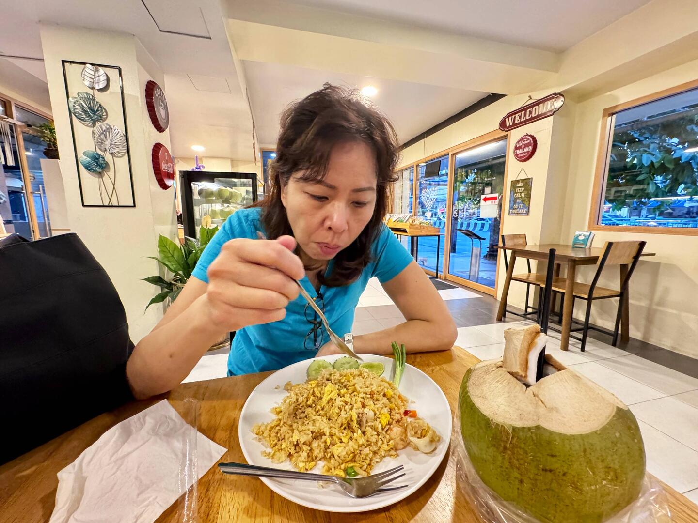 Kathy was very hungry and nearly finished the whole plate. I had a few forkfuls but I was a bit cautious. Sometimes food in foreign countries doesn’t agree with me and I didn’t want to start ourMeer informatie