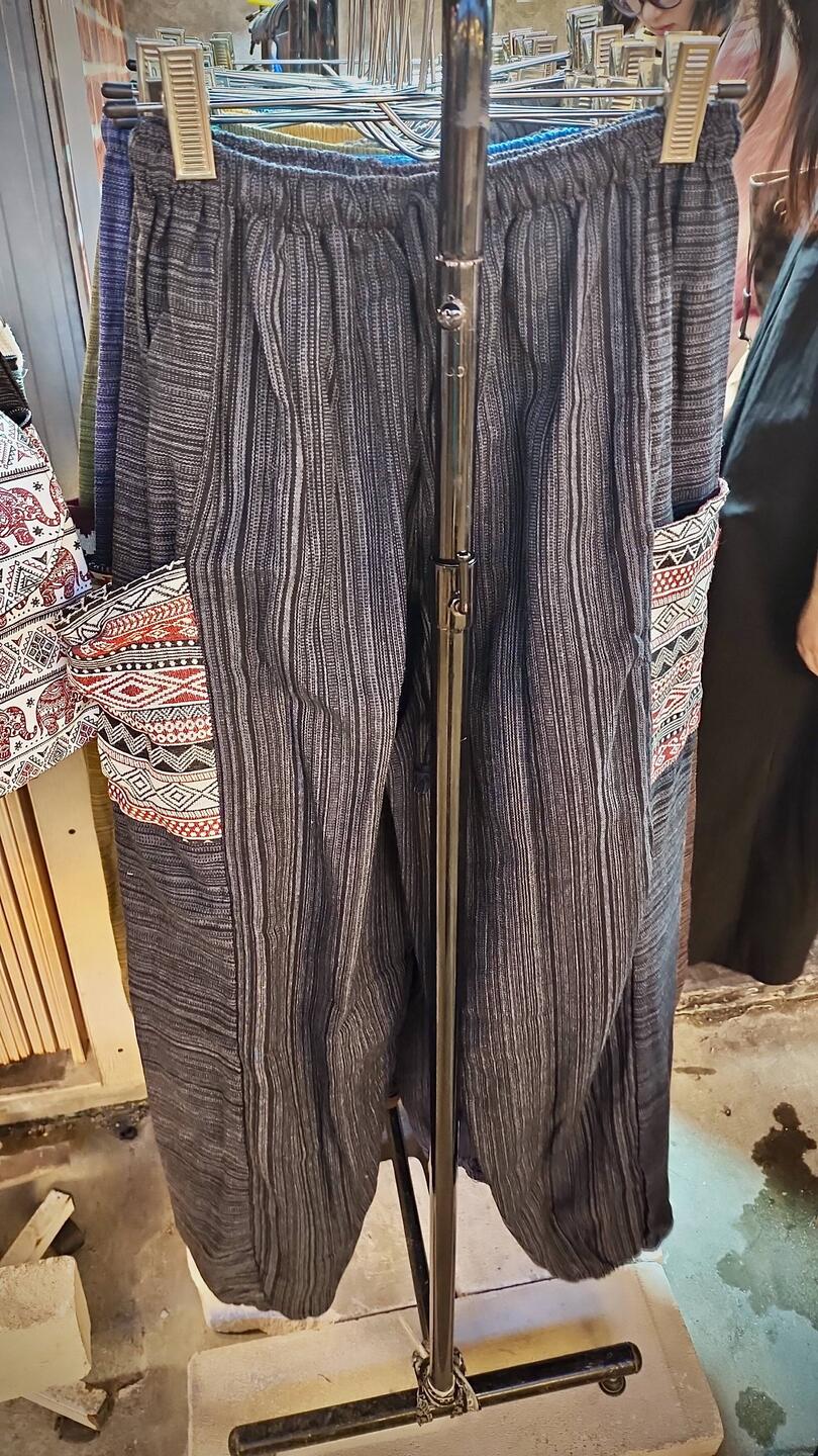 Kathy is trying to find a pair of pants like this to wear as pajamas. They look very loose and comfortable but, so far, she hasn’t been too pleased with the colors or the quality. She’d like them in cotton but all we’ve seen so far is a cotton and polyester blend. I hope we find what she wants before we leave Thailand.Read more