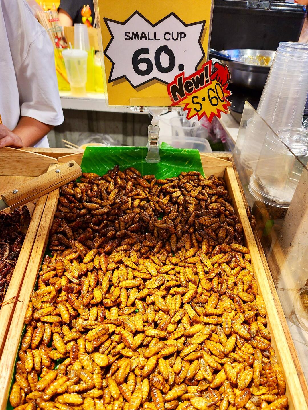 A small cup of these insects will only set you back 60 baht. That’s around $1.85 in American dollars. I’m guessing that’s a reasonable price but I’d never be able to finish a cup of bugs, notEn savoir plus