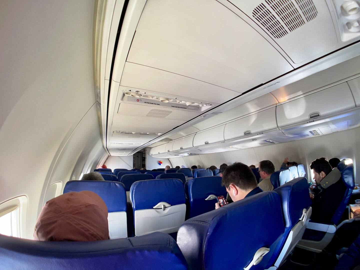 I’m really glad that the plane is so empty. It’s so much more comfortable flying with some extra space to stretch out and relax. We’re more used to sold out flights where space is very tight.